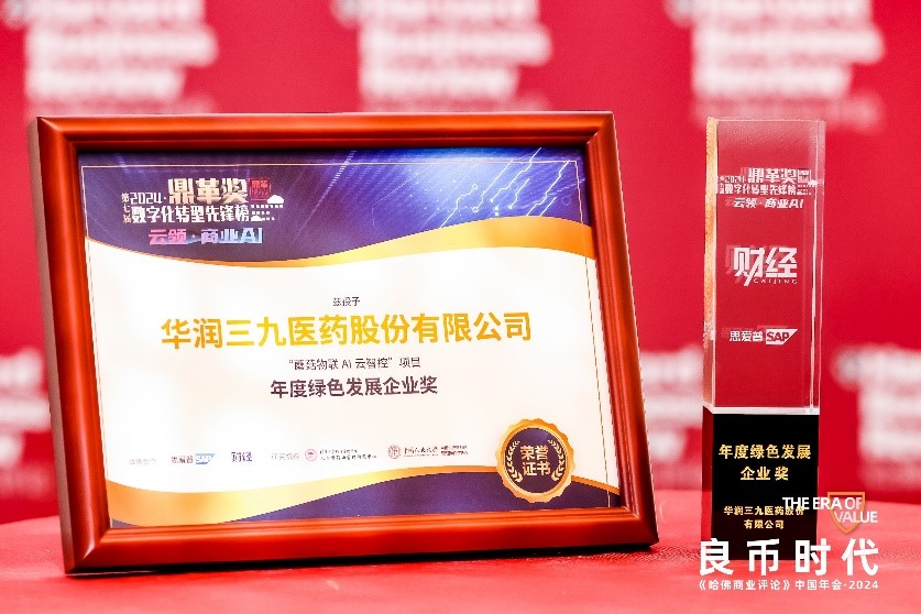 华润三九荣获“鼎革奖”数字化转型先锋榜-年度绿色发展企业奖