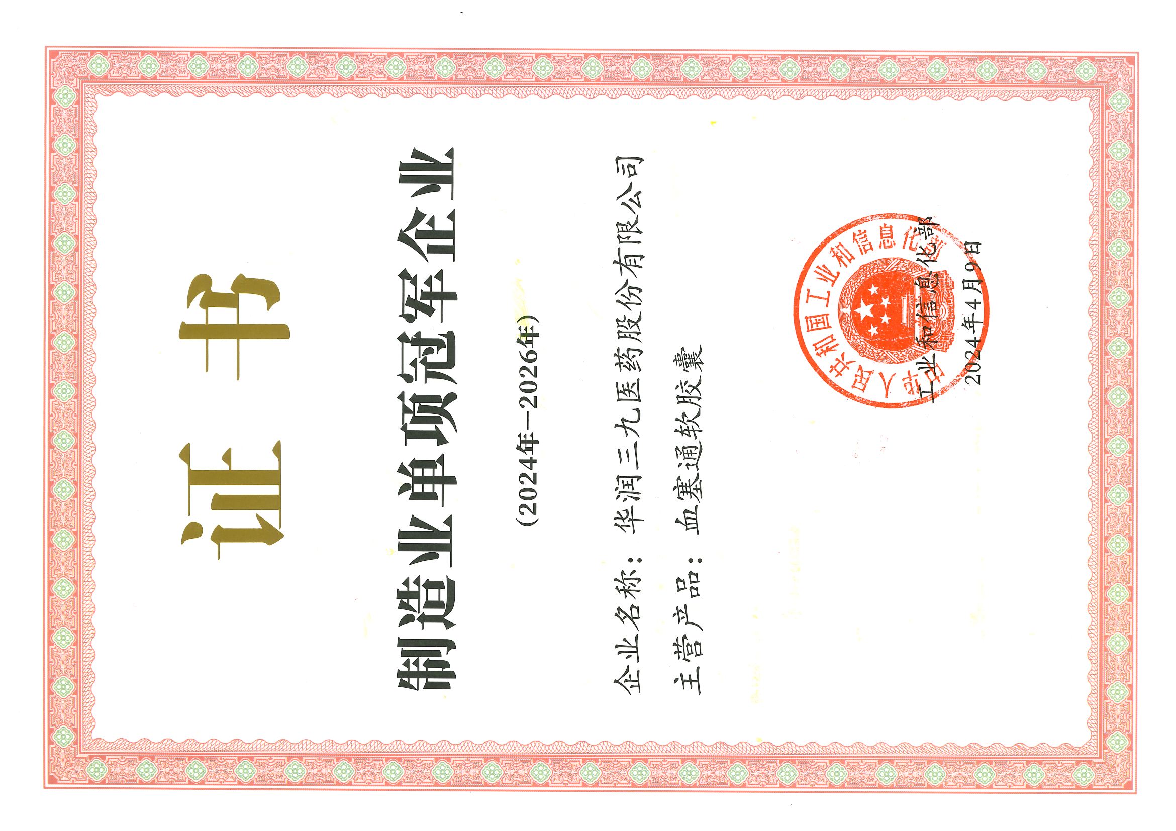 了解更多>>>华润三九获颁国家级荣誉—“制造业单项冠军”证书