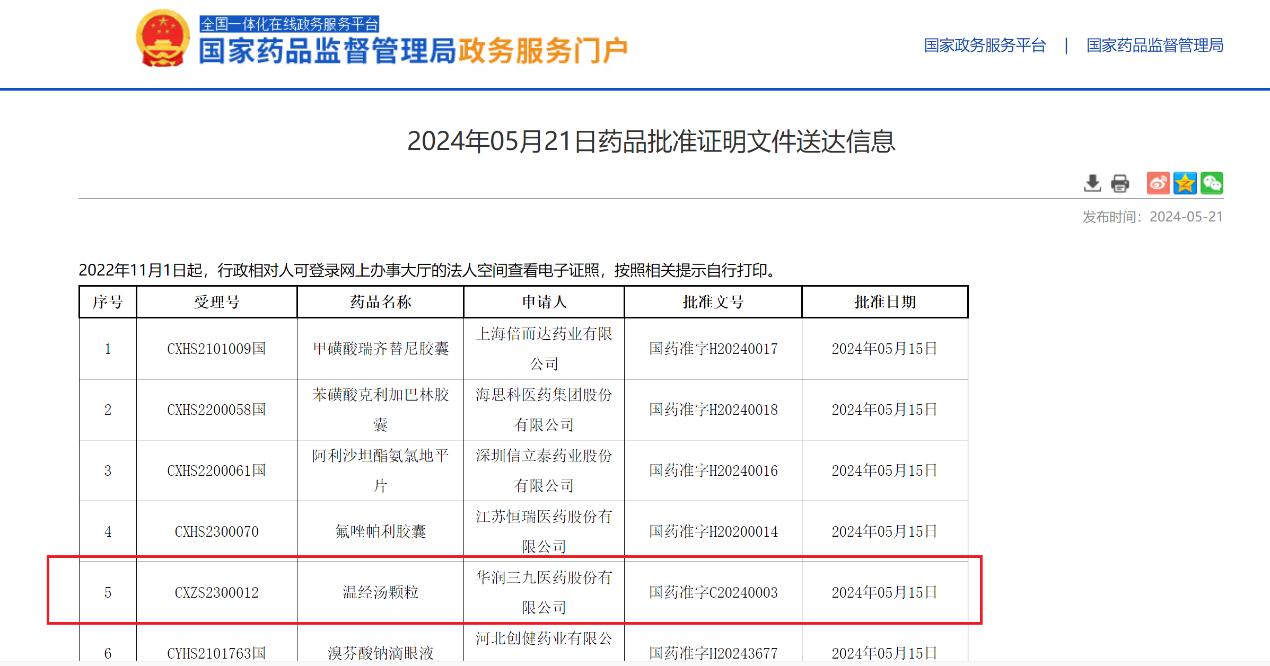 了解更多>>>华润三九又一首经典名方“温经汤颗粒”获批上市