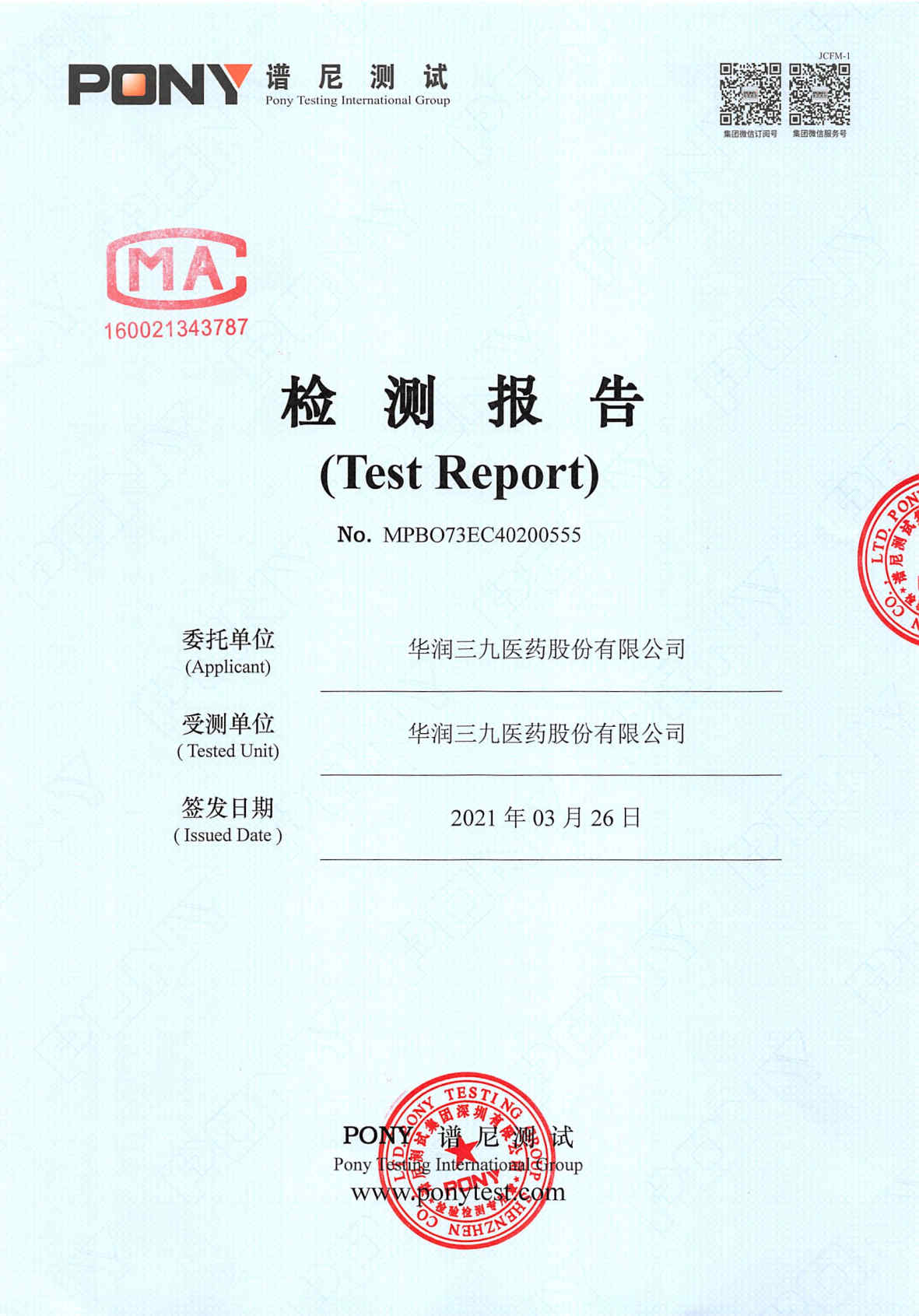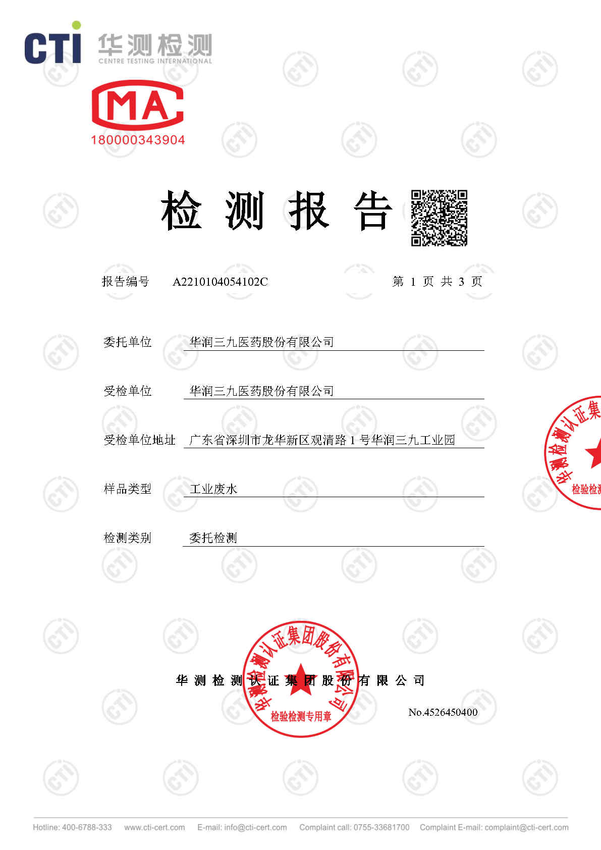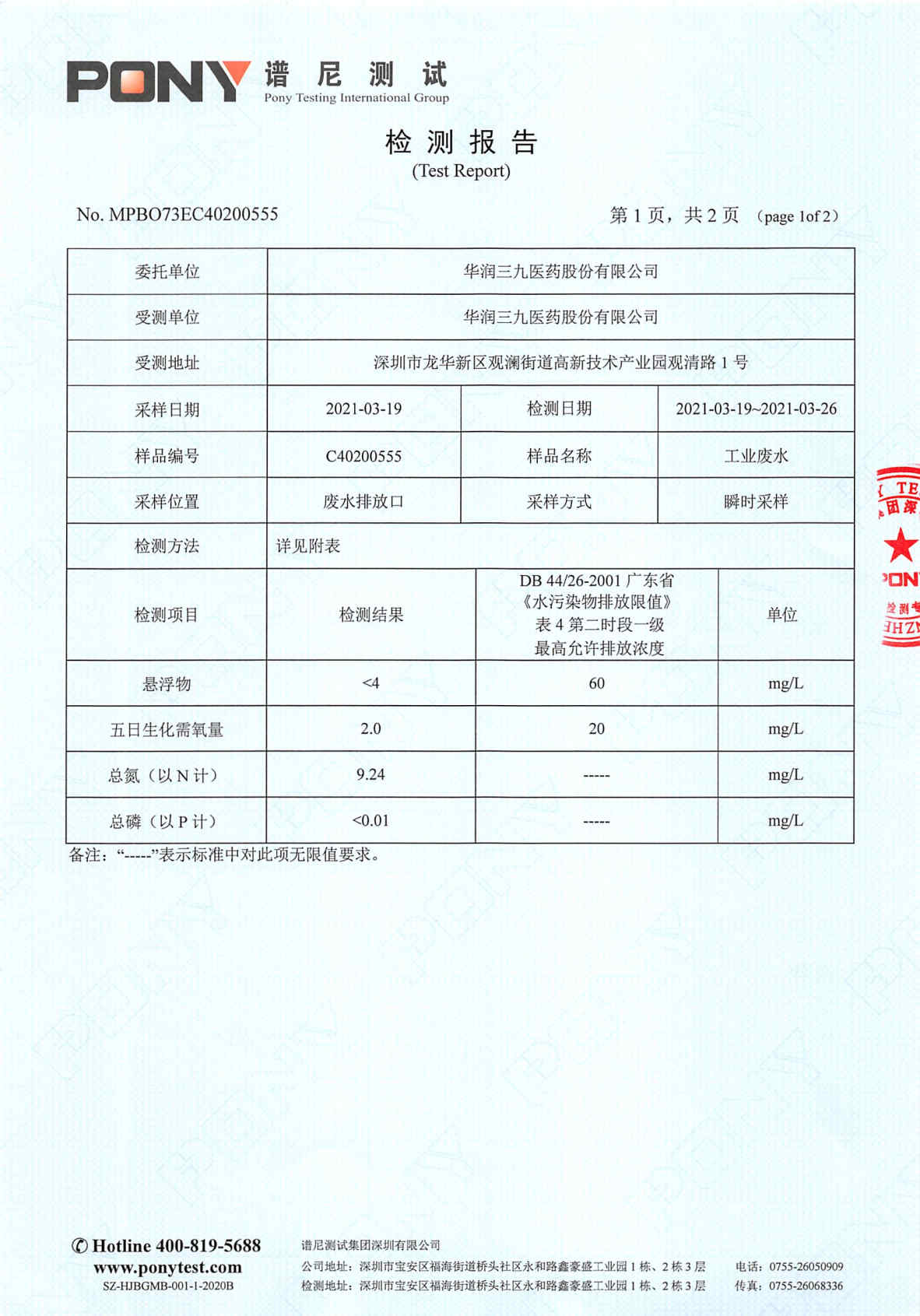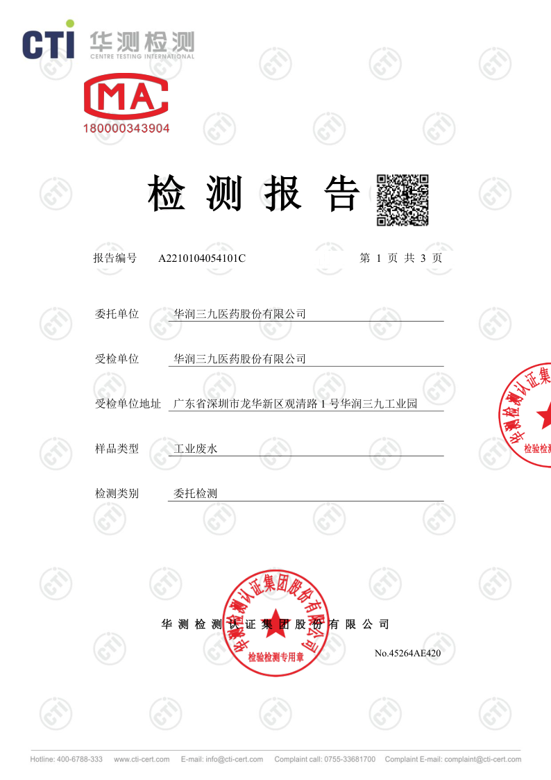 华润三九废水检测报告(2021年3月)
