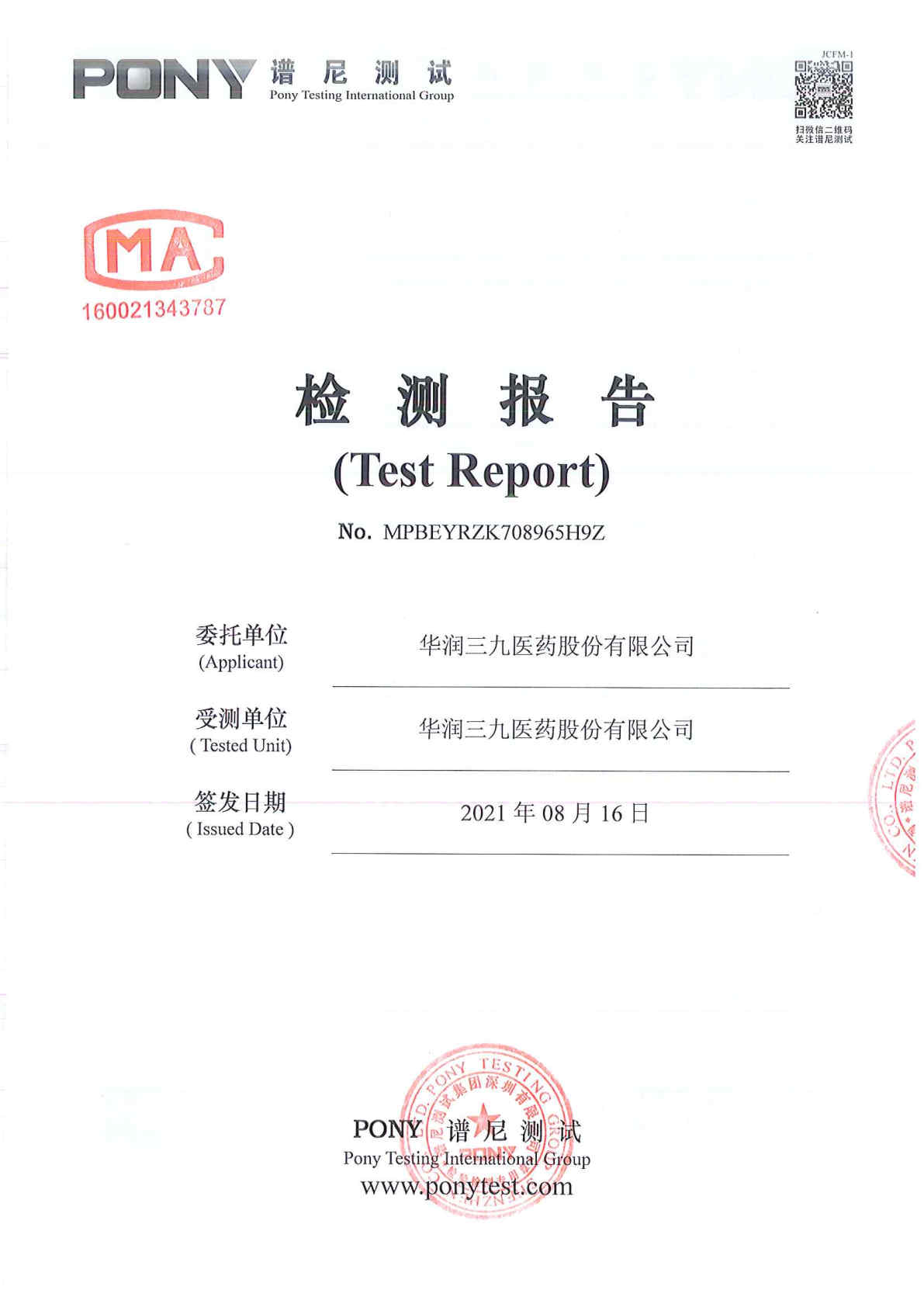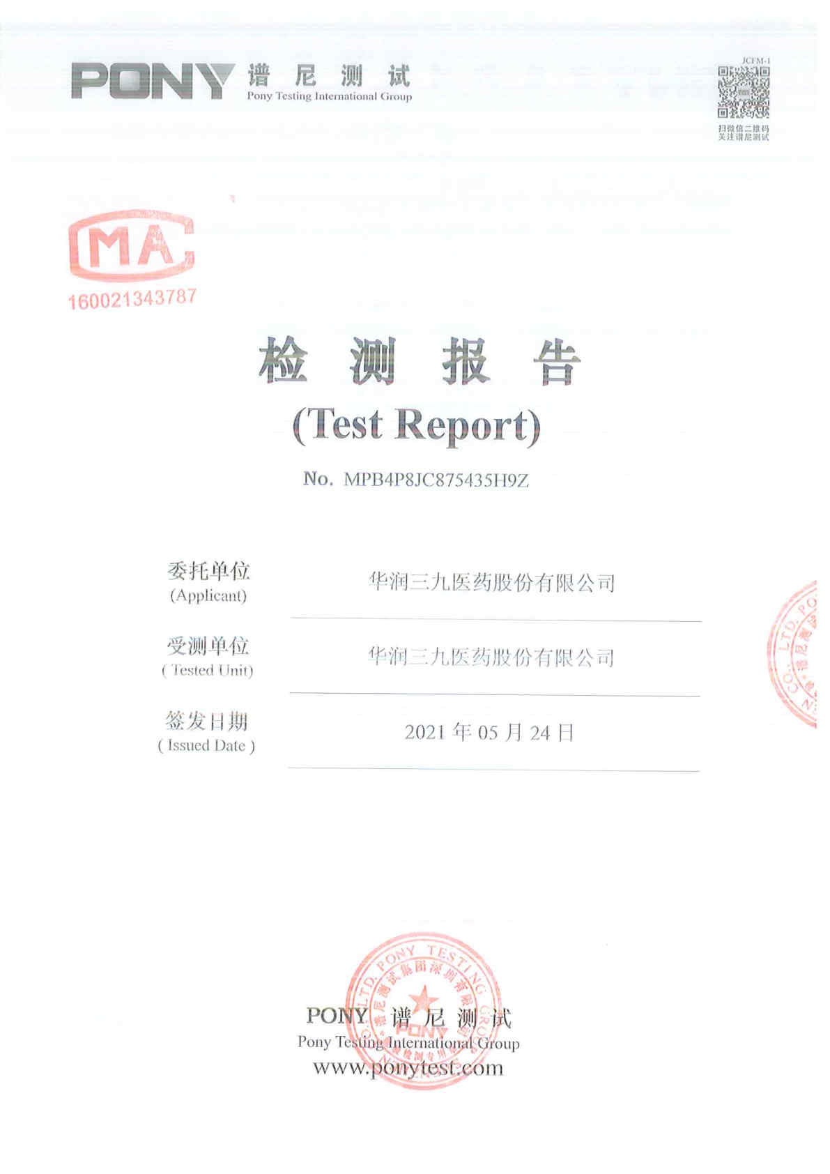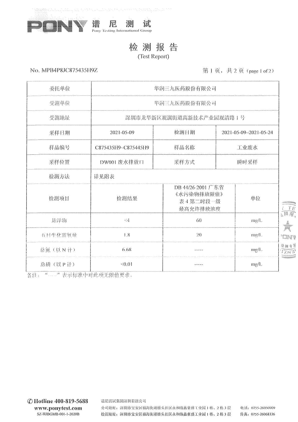 华润三九废水检测报告(2021年5月)