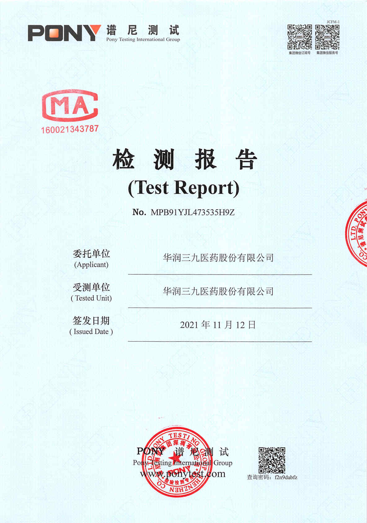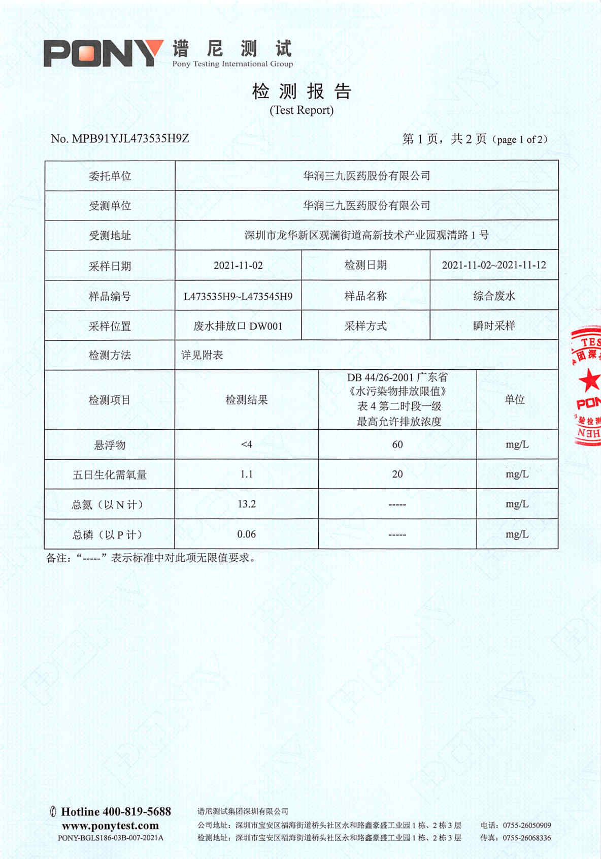 华润三九废水检测报告(2021年11月)