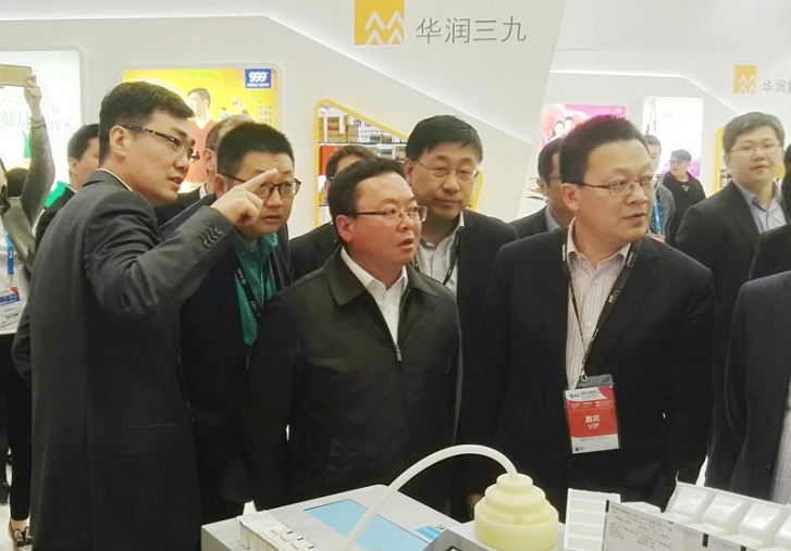 参加开幕式之后,华润医药董事长王春城、常务副总经理李向明、高级副总经理冯毅等亲临华润三九展台参观指导。华润三九助理总裁朱百如对公司展台作了展示介绍。