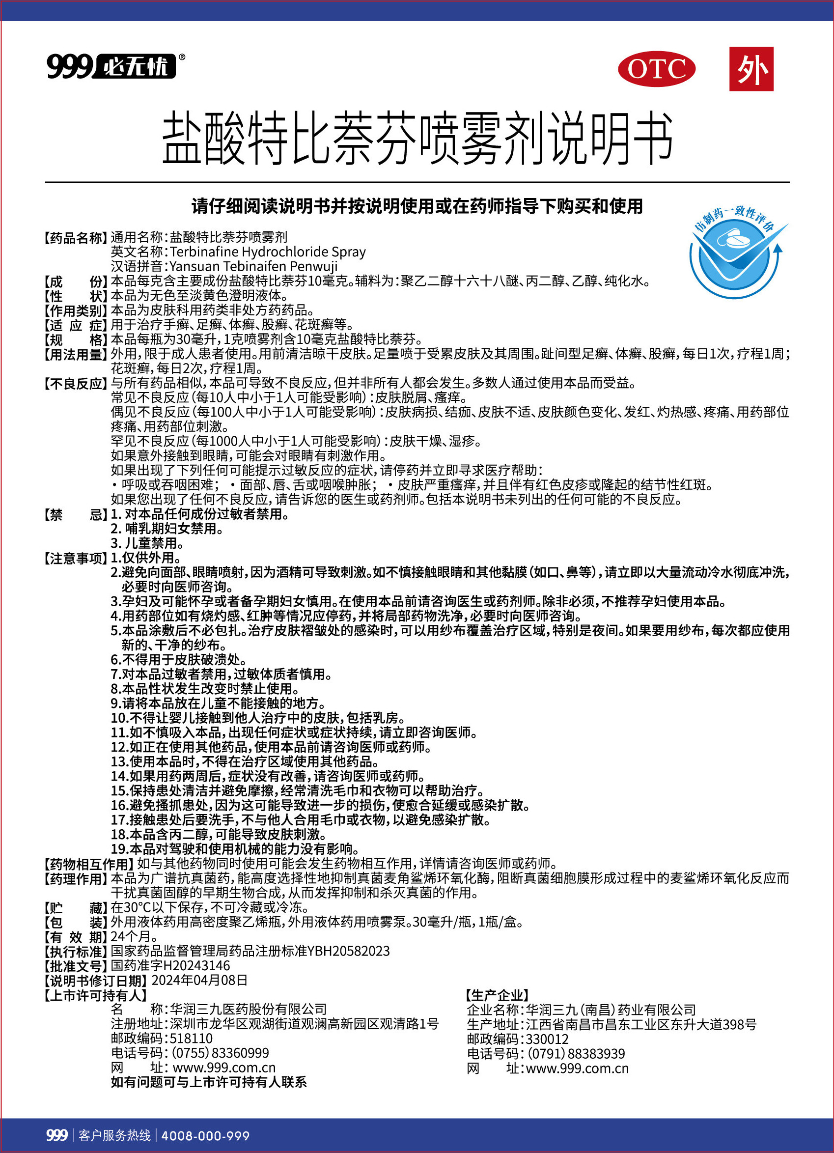 盐酸特比萘芬喷雾剂