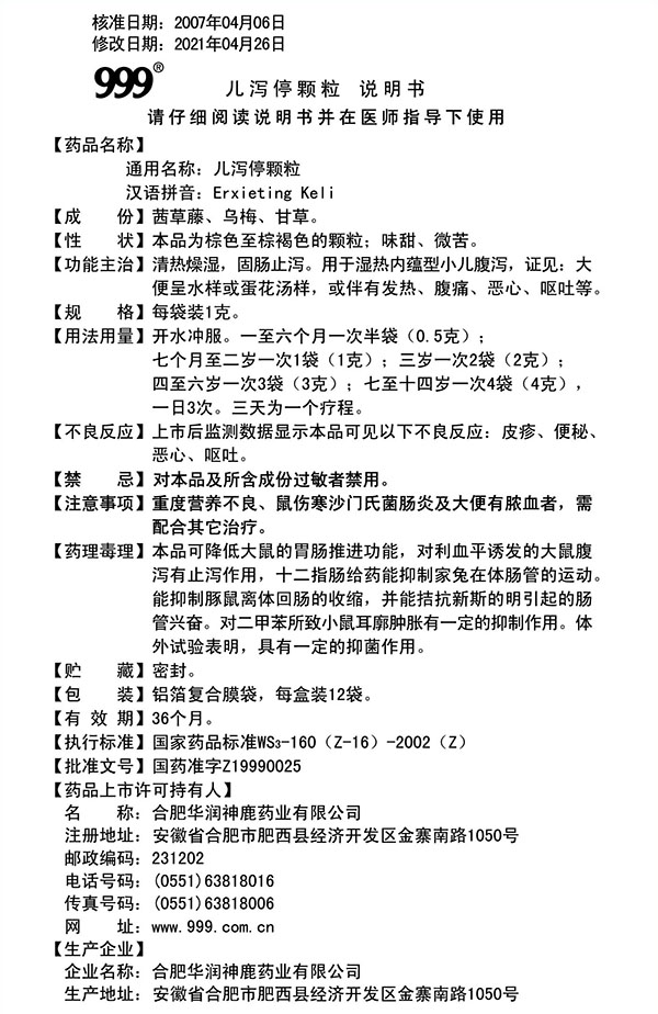 儿泻停颗粒 1g x 12袋